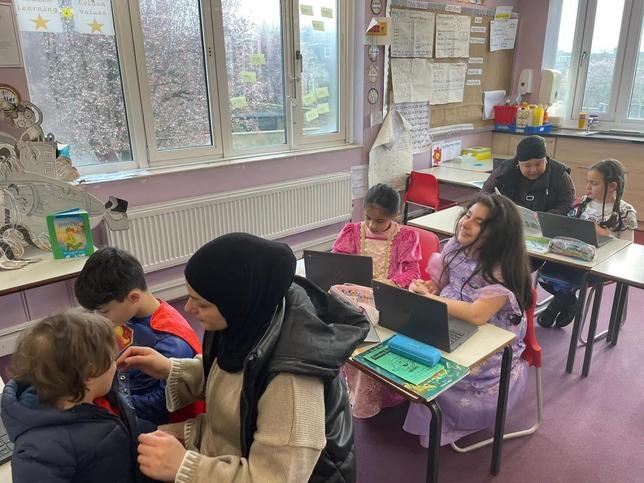The children are spending the day engaged in reading-based exercises and generally having some fun.
