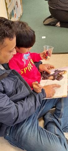 After Breakfast, the parents joined the children in class for some fun reading exercise. It was lovely to see books and stories being shared all around the school.