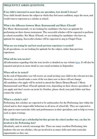 St. Marylebone CE School (Marylebone High Street) has 16 places for Performing Arts scholars who would not usually be eligible for places at the school.